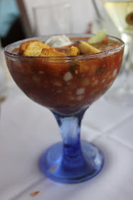 You rarely see gazpacho on a menu, so I had to get it, and it was wonderful! One of the best I have had! And by the way, that is a pickle stuck in there! Love!